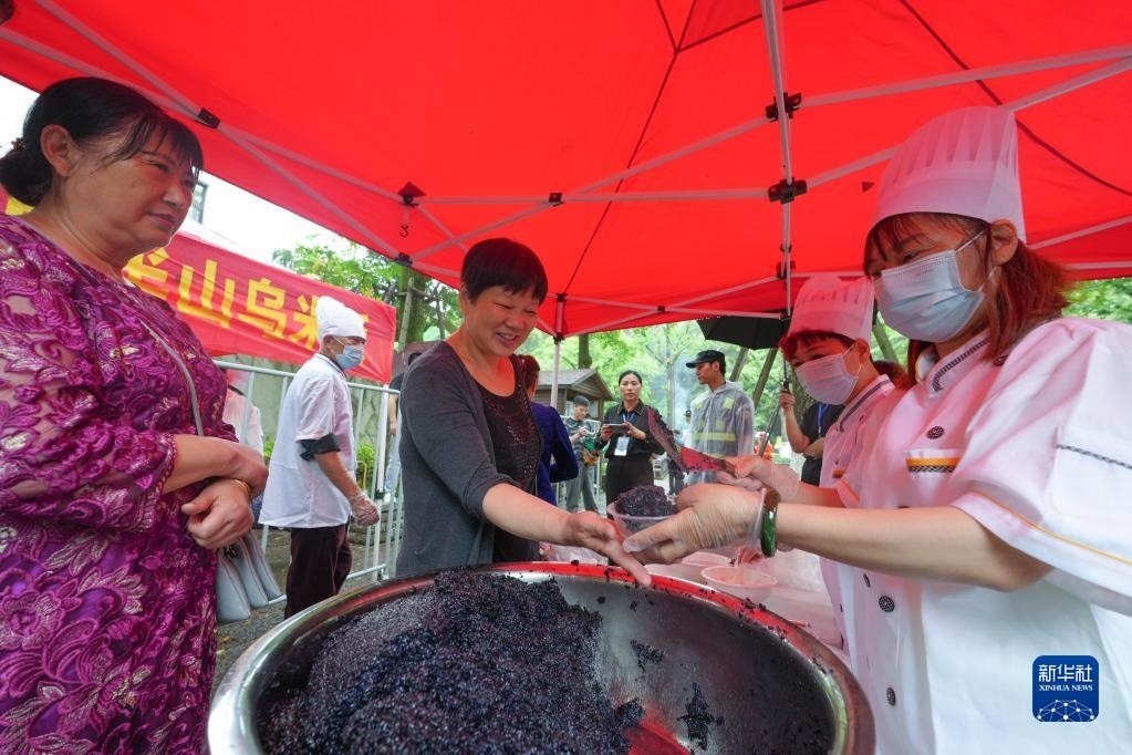 5月6日,游客在活動(dòng)現(xiàn)場品嘗烏米飯。