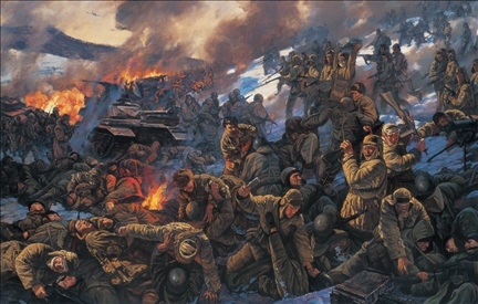 《激戰(zhàn)松骨峰》 布面油畫(huà)