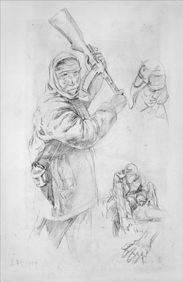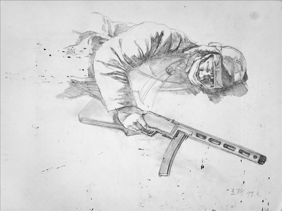 《激戰(zhàn)松骨峰》素描習(xí)作4