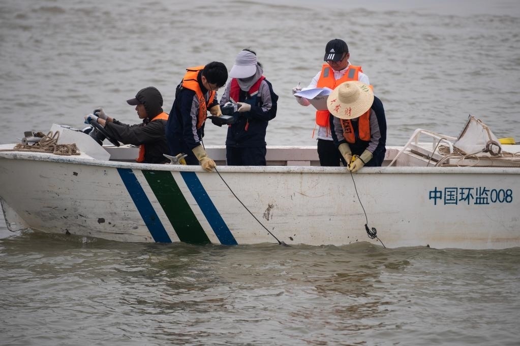圖為監(jiān)測(cè)人員正在進(jìn)行水生態(tài)環(huán)境現(xiàn)場(chǎng)參數(shù)測(cè)定。新華社記者肖藝九 攝