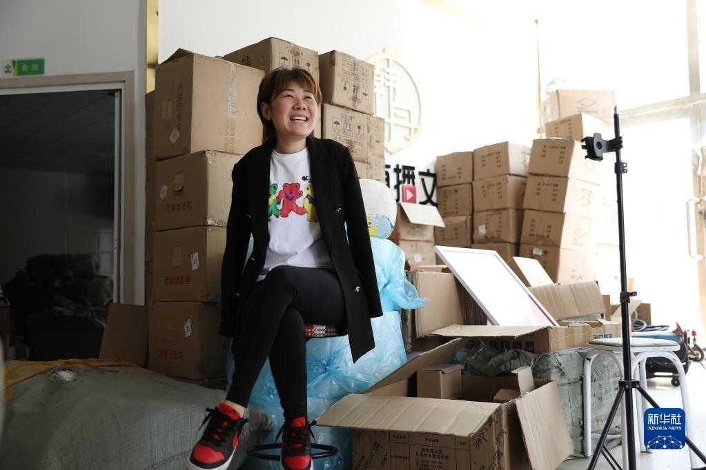 5月11日,韓丹在自己開的網(wǎng)絡傳媒公司內(nèi),詢問當天直播售貨情況。   新華社記者 姚劍鋒 攝
