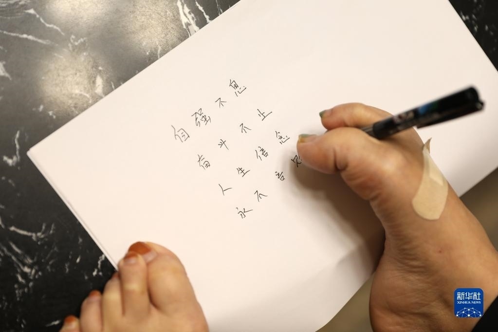 成為一名母親,對于韓丹來說,是一個異常艱難的過程。沒辦法用手抱住喂奶,韓丹就坐在床上,用腳把孩子擁在懷里。女兒的頭發(fā)漸漸長長,韓丹就學著用腳幫她扎馬尾辮,盡自己最大的努力照顧孩子。但在韓丹心里,依然有一個遺憾:不能擁抱自己的孩子。還好兩個孩子很懂事。遇見同學的疑問,他們總會自信地說:“我的媽媽很厲害,她的腳什么都能干!”   新華社記者 姚劍鋒 攝