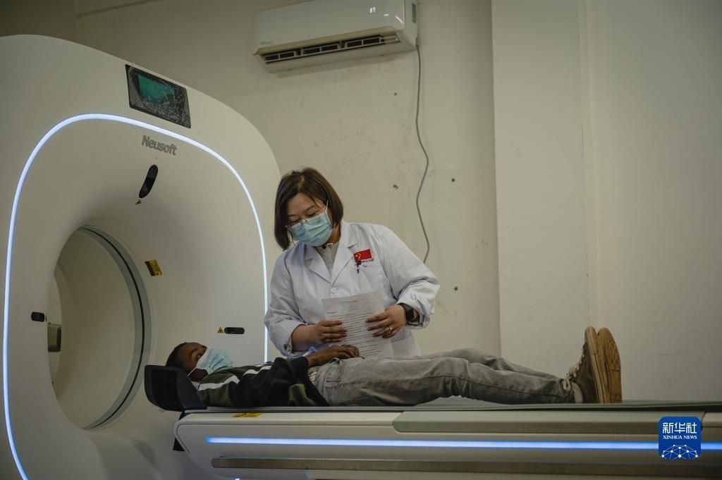 5月9日,在厄立特里亞首都阿斯馬拉的奧羅特醫(yī)院,醫(yī)療隊(duì)CT室醫(yī)生田茜為患者做檢查。   新華社記者 王冠森 攝