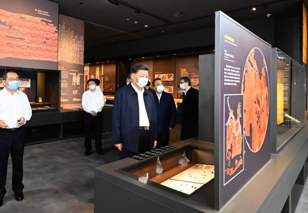 2022年10月28日,習近平在安陽市殷墟博物館考察。