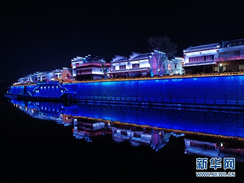 夜幕下的新安江畔。新華網(wǎng)李東標(biāo) 攝
