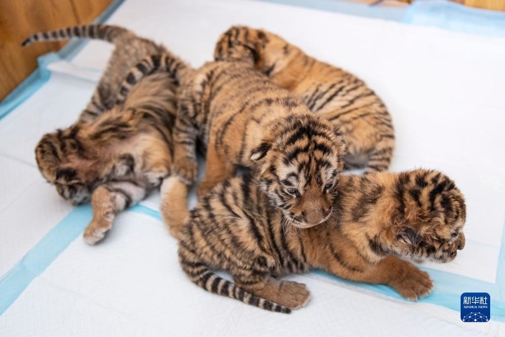目前,黑龍江東北虎林園中的東北虎進入繁殖高峰期,今年已“添丁”10余只。黑龍江東北虎林園位于哈爾濱市,是世界最大的東北虎人工飼養(yǎng)繁育基地——中國橫道河子貓科動物飼養(yǎng)繁育中心的重要飼繁基地。   新華社記者 謝劍飛 攝