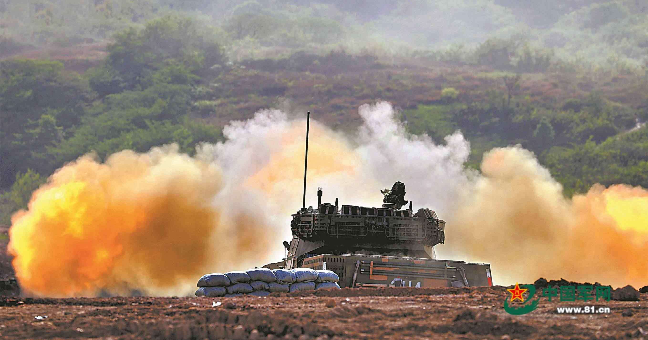 戰(zhàn)機(jī)稍縱即逝,偵察隊(duì)員立即向指揮所報(bào)告情況并呼叫炮火支援。各戰(zhàn)斗小組快速分發(fā)彈藥,戰(zhàn)車迅即駛向預(yù)備陣地。“目標(biāo)鎖定,射擊!”剎那間,一發(fā)發(fā)炮彈呼嘯著撲向“敵”陣地。