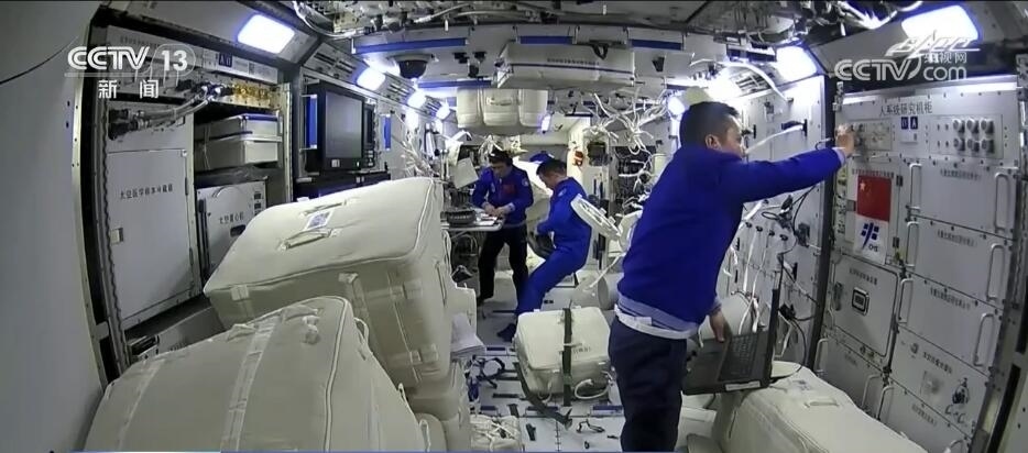 2022年6月5日,空間站迎來了神舟十四號(hào)陳冬、劉洋、蔡旭哲三名航天員入駐。隨著問天實(shí)驗(yàn)艙、夢(mèng)天實(shí)驗(yàn)艙的先后到來,他們?cè)谌蝿?wù)期間迎來了中國空間站“T”字基本構(gòu)型組裝完成的歷史性時(shí)刻,開啟中國人太空“三居室”時(shí)代。