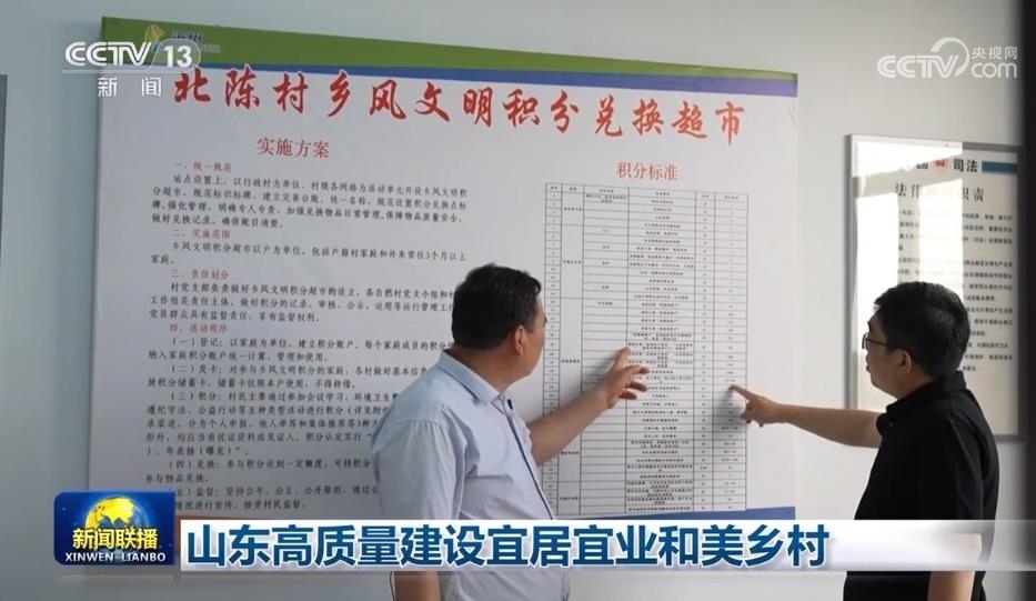 與此同時,山東還引入信用管理機制,有效提升群眾建設宜居宜業(yè)和美鄉(xiāng)村的積極性。在濱州市北陳村,每月都會有一次征信表彰活動,從村容村貌、村風建設、村務管理等方面,細化梳理了上百條加分和減分項,鎮(zhèn)村兩級超市、加油站等也被納入信用體系,村民可使用信用積分兌換商品。