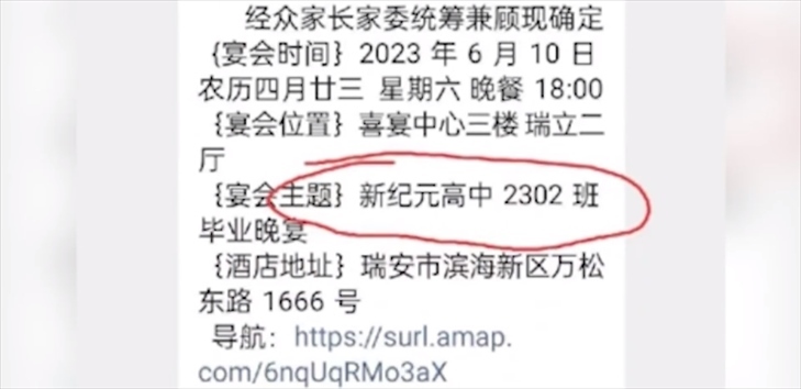 ·溫州一高中高額收費組織畢業(yè)晚宴?校方回應(yīng):系家長私自組織,任課教師不知情且未參與。