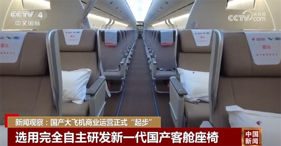 另外,飛機公務艙、經(jīng)濟艙均選用完全自主研發(fā)的新一代國產(chǎn)客艙座椅。其中,8個公務艙座椅為全鋁合金框架結(jié)構(gòu),采用搖籃式設(shè)計,后靠可達120度,前后座椅間距超過1米;156個經(jīng)濟艙設(shè)計采用3-3布局,中間座位比兩邊座位寬1.5厘米;加上C919客艙擁有2.25米的過道高度,旅客能感受到舒適的頂部和前方視覺空間。