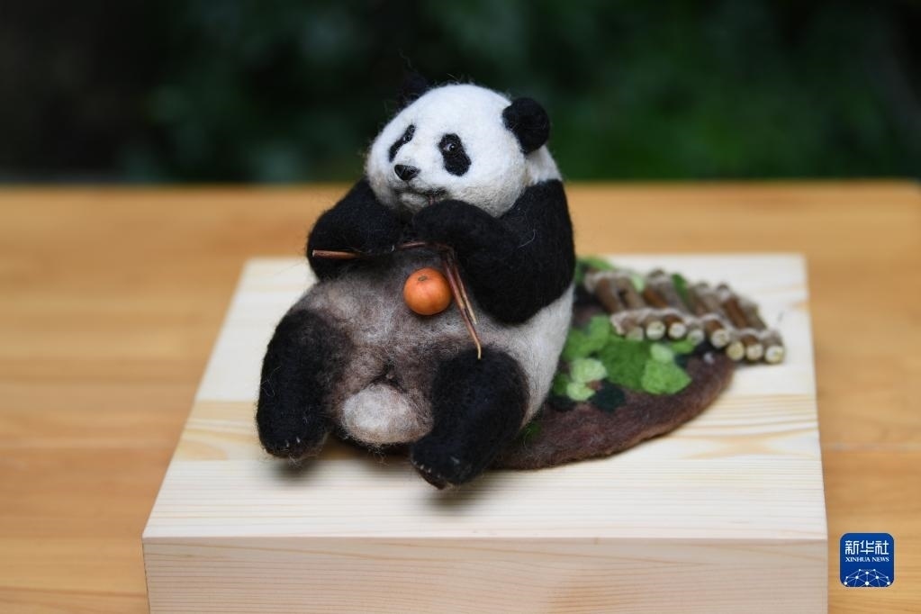 這是5月29日在成都大熊貓繁育研究基地都江堰野放繁育研究中心拍攝的市民以梅蘭為原型制作的毛氈禮物。   新華社記者 胥冰潔 攝