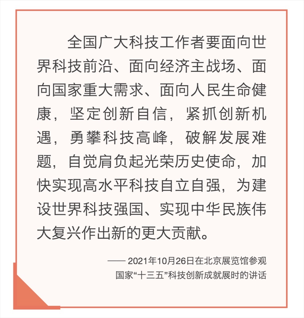 在以習(xí)近平同志為核心的黨中央堅(jiān)強(qiáng)領(lǐng)導(dǎo)下,我國(guó)廣大科技工作者必將以與時(shí)俱進(jìn)的精神、革故鼎新的勇氣、堅(jiān)忍不拔的定力,肩負(fù)起時(shí)代重任,在偉大復(fù)興的征程上奮勇前進(jìn),努力實(shí)現(xiàn)高水平科技自立自強(qiáng)!