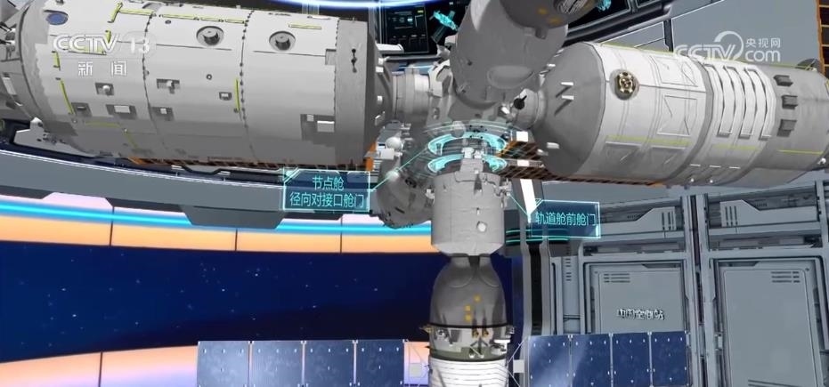在此之后,神舟十六號航天員就可以打開第二道門——飛船軌道艙的前艙門。而與此同時,神舟十五號乘組航天員也將在對接通道的另一端,打開第三道門——空間站節(jié)點艙徑向對接口的艙門,迎接新一批航天員的到來。