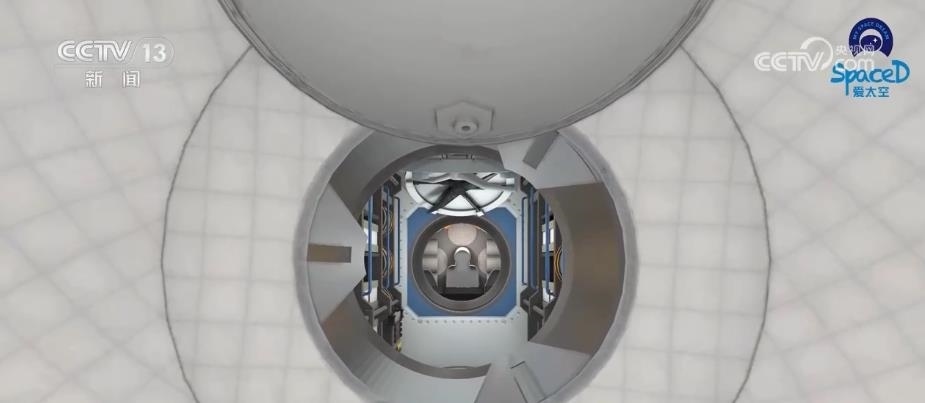 我們通過虛擬演示從“外邊”了解了航天員如何從飛船進入空間站。再通過動畫和上次兩個乘組會師的畫面,從“里邊”看一下這個過程。
