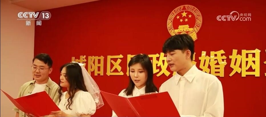 新人 薛雷:非常幸福,非常開(kāi)心。“跨省通辦”婚姻登記業(yè)務(wù)大大節(jié)省了我們的時(shí)間成本,以及機(jī)票往返費(fèi)用1萬(wàn)多元的成本。