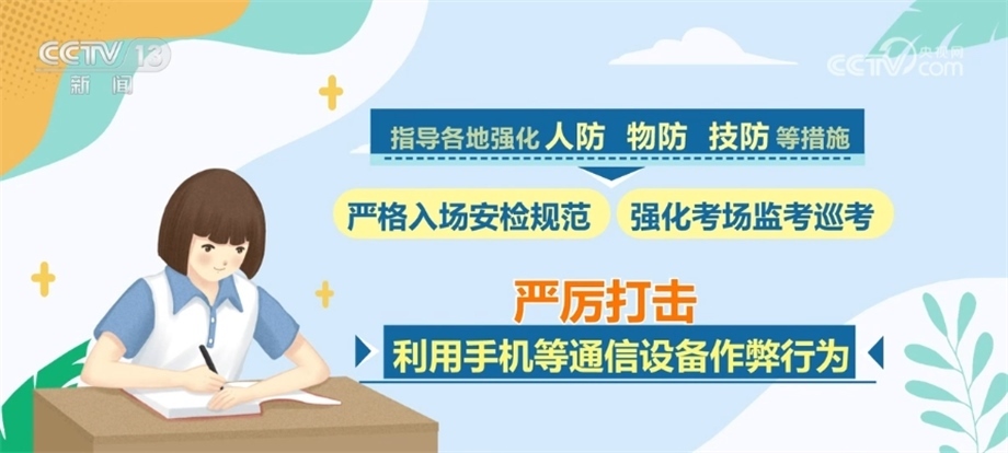 同時(shí),會(huì)同公安部、工業(yè)和信息化部等部門(mén)聯(lián)合開(kāi)展打擊作弊專(zhuān)項(xiàng)行動(dòng),將防范手機(jī)作弊作為重中之重,多措并舉、綜合施策,指導(dǎo)各地強(qiáng)化人防、物防、技防等措施,嚴(yán)格入場(chǎng)安檢規(guī)范,強(qiáng)化考場(chǎng)監(jiān)考巡考,嚴(yán)厲打擊利用手機(jī)等通信設(shè)備作弊行為。對(duì)于在高考中存在作弊行為的考生和人員,將依法依規(guī)嚴(yán)肅處理,堅(jiān)決維護(hù)高考的公平公正。
