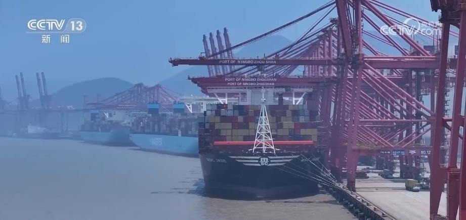 央視網(wǎng)消息:近日,我國(guó)自主研制的超大型集裝箱船“地中海米歇爾卡佩里尼”輪首航。該輪首站??繉幉ㄖ凵礁鄞┥礁蹍^(qū)集裝箱碼頭,從此開啟其航運(yùn)之旅。這已是穿山港區(qū)78天內(nèi)迎來的第3艘超大型集裝箱貨輪首航。
