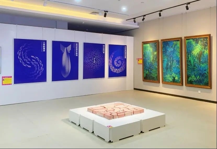 本次展覽以油畫、版畫、國畫、影像、雕塑、裝置藝術(shù)以及創(chuàng)新設計等多種形式,回應著藝術(shù)家們對于“生態(tài)流變”這一意象與內(nèi)涵的理解,以及對“環(huán)境共生”這一問題的思考與探索。