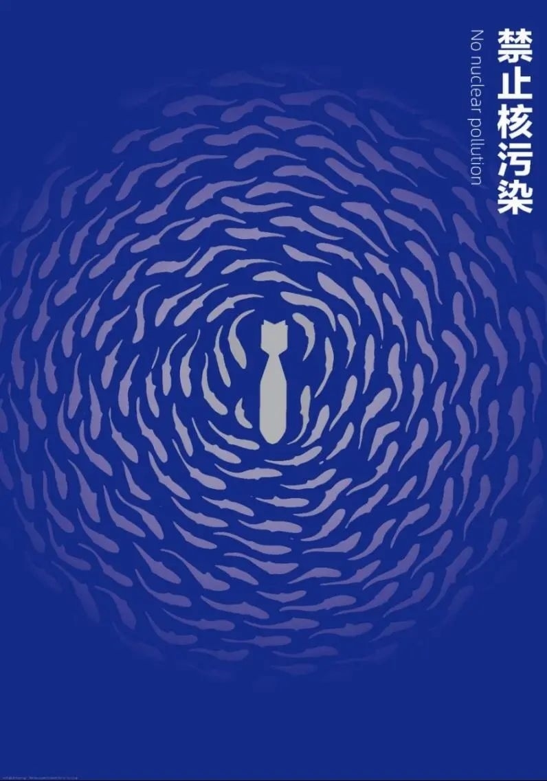 《禁止核污染》以爆炸的核彈呈現(xiàn)的煙霧為視覺形象載體,將煙霧元素進行提取簡化,加強設計語言。寓意核污染對生態(tài)環(huán)境的破壞,呼吁環(huán)境共生的主旨。