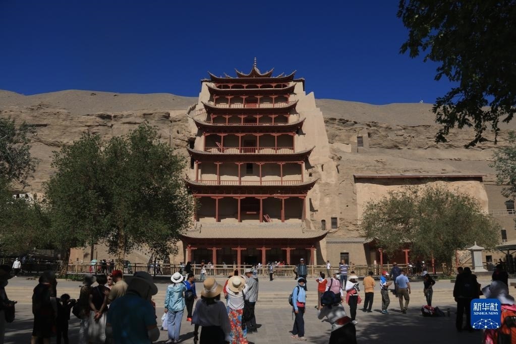 6月8日,游客在世界文化遺產(chǎn)地莫高窟參觀游覽。