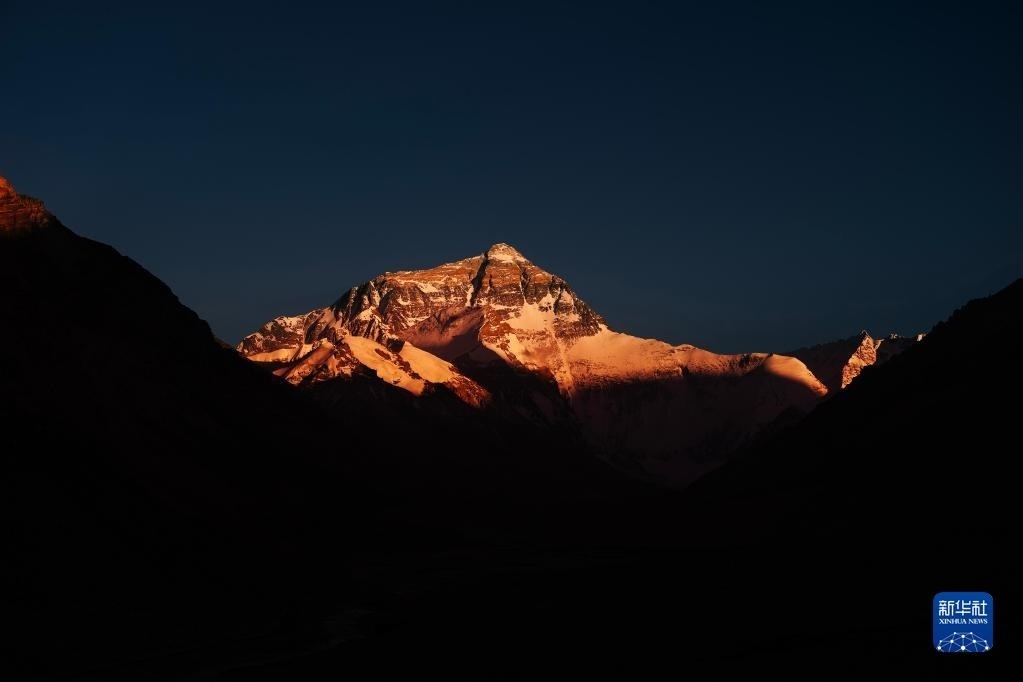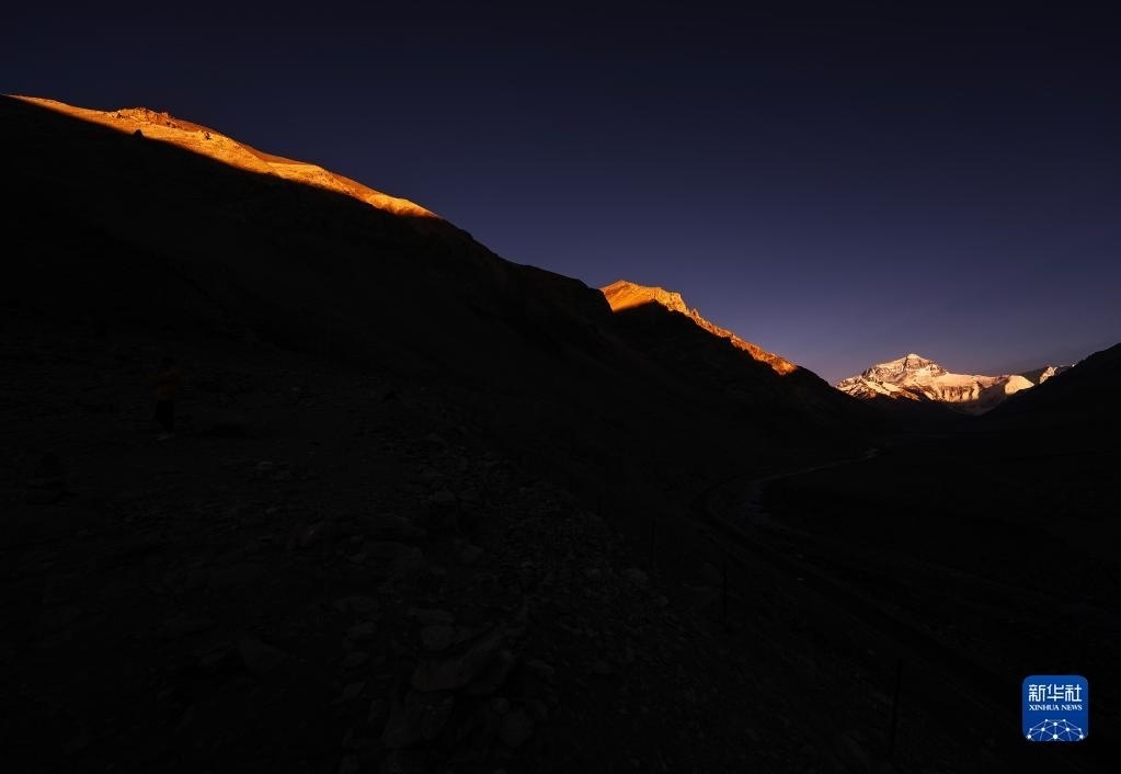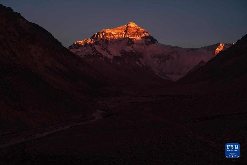 巍峨的珠穆朗瑪峰屹立于青藏高原,珠峰地區(qū)氣候復(fù)雜,景色瞬息萬變?!皣乐?從雪山奔向大?!眻蟮澜M在落日時分來到珠穆朗瑪峰腳下,記錄下世界之巔的“日照金山”壯美場景。   新華社記者 費(fèi)茂華 攝