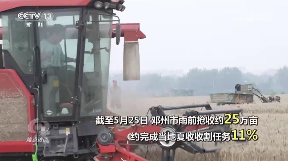 央視網消息(焦點訪談):今天是芒種節(jié)氣,芒種的意思是有芒的麥子快收,有芒的稻子可種。這是一年中農事最忙的時節(jié)。夏熟的要收,秋收的要播,春種的要管,首先就是麥收。河南被稱為“中原糧倉”,是我國小麥播種面積最大的省份,小麥年產量占到全國的四分之一,而位于河南南部的鄧州,則是全國知名的產糧大縣,小麥種植面積210多萬畝。但從5月25日開始,當地卻連續(xù)幾天都是下雨天氣。怎么減輕雨水對收成的影響?
