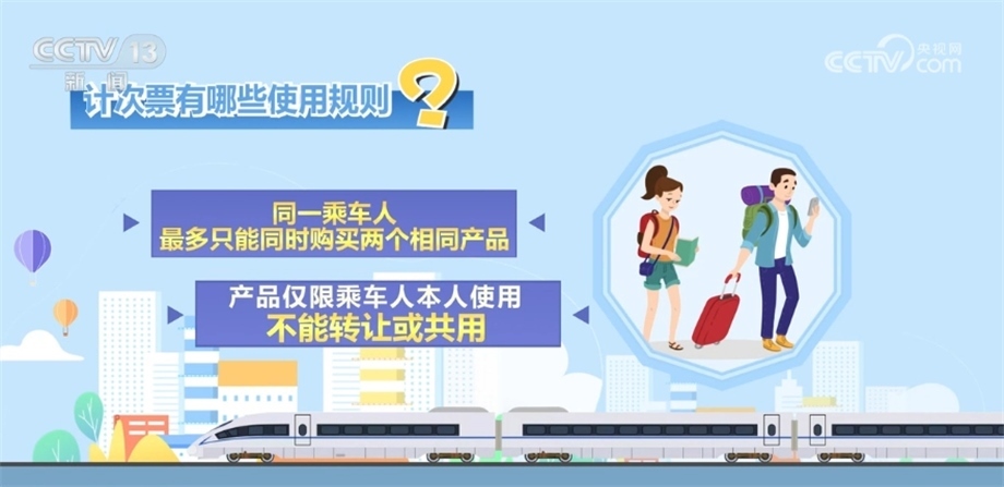 鐵路12306科創(chuàng)中心高級(jí)技術(shù)經(jīng)理 王永峰:20次計(jì)次票指的是旅客可以在90天內(nèi)最多使用20次,在購(gòu)買產(chǎn)品時(shí)指定區(qū)間、指定席別的這樣一個(gè)產(chǎn)品。定期票指的是一個(gè)可以在30日內(nèi)最多乘坐60次指定區(qū)間和席別的車次。目前,計(jì)次票是按照常規(guī)票價(jià)的九五折來(lái)進(jìn)行定價(jià),定期票有一個(gè)上限次數(shù)是30日最多乘坐60次,但是我們定價(jià)是按照44次來(lái)定價(jià)。