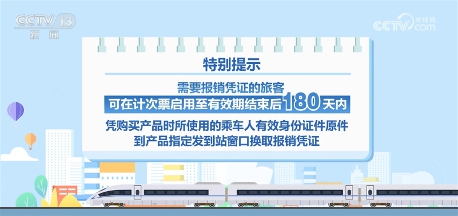 特別提示,需要報(bào)銷憑證的旅客可在計(jì)次票啟用至有效期結(jié)束后180天內(nèi),憑購(gòu)買產(chǎn)品時(shí)所使用的乘車人有效身份證件原件,到產(chǎn)品指定發(fā)到站窗口換取報(bào)銷憑證。