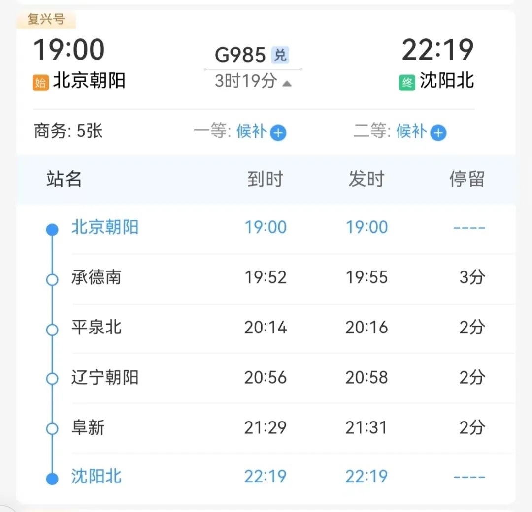 乘坐G985次列車準(zhǔn)備返回沈陽
