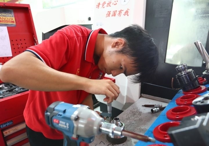 “我們希望讓大家看到,并不是要進(jìn)入大學(xué)才算成功,中國(guó)制造的高質(zhì)量發(fā)展呼喚高質(zhì)量的職業(yè)教育,希望更多的年輕人能投入這一片藍(lán)海?!比~軍鋒說(shuō)。
