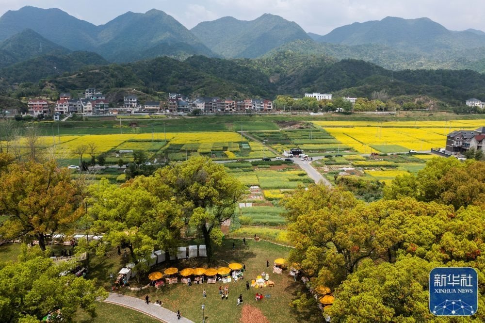 空中俯瞰浙江杭州市富陽區(qū)新桐鄉(xiāng)小桐洲村香樟公園和盛開的油菜花田(4月7日攝,無人機照片)。新桐鄉(xiāng)依托近萬畝盛開的油菜花田和美麗的富春江風(fēng)景,開展特色鄉(xiāng)村文旅活動,做好美麗鄉(xiāng)村、美麗經(jīng)濟的文章,助力鄉(xiāng)村振興。新華社記者 徐昱 攝