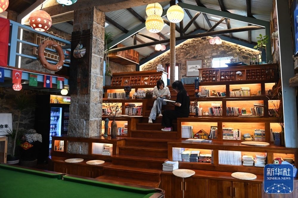 游客在浙江溫嶺市石塘鎮(zhèn)海利村一家民宿內(nèi)閱讀書籍(6月7日攝)。近年來,海利村依托濱海風(fēng)光,整合石屋資源,大力發(fā)展生態(tài)旅游,已成為石塘鎮(zhèn)民宿最集中的區(qū)域,被譽為“中國最美漁村”。新華社記者 黃宗治 攝
