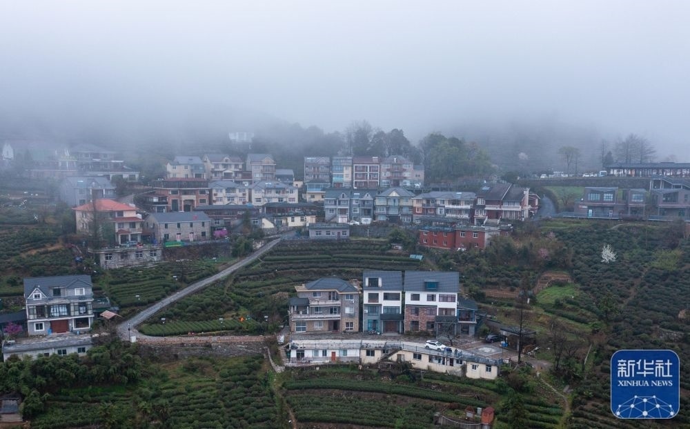 空中俯瞰云霧中的浙江杭州富陽里山鎮(zhèn)安頂村(3月23日攝,無人機照片)。安頂村海拔700多米,一年中有200多天可觀賞“安頂云?!逼婢埃?shù)匕傩找劳懈呱皆旗F茶以及特色鄉(xiāng)村旅游產(chǎn)業(yè),走出了一條茶旅融合的新農(nóng)村共同富裕發(fā)展模式。新華社記者 徐昱 攝