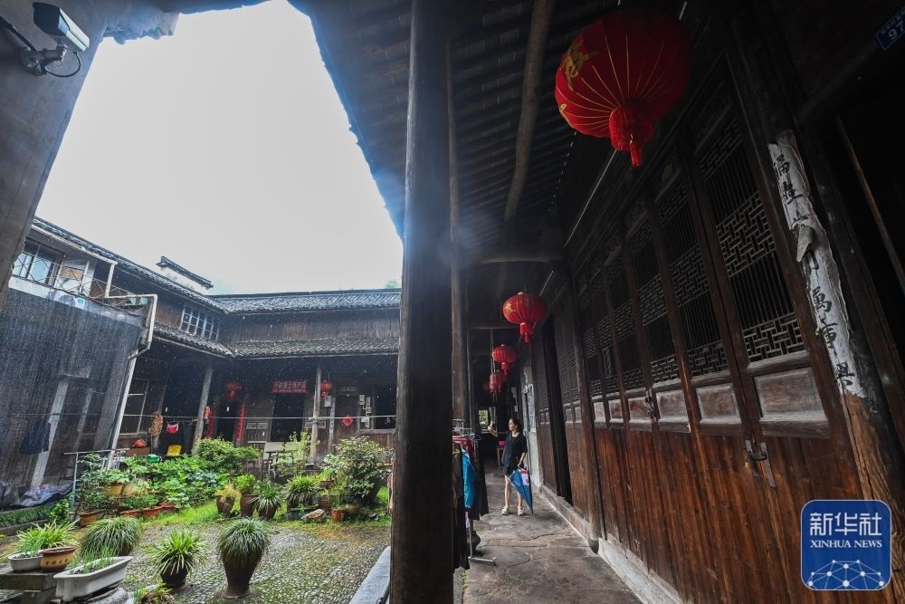 6月8日,游客在浙江諸暨市斯宅村的千柱屋景區(qū)內(nèi)游覽。近年來,當?shù)貙琶窬咏ㄖM行有效保護和修復(fù),積極弘揚古村落文化特色,打造優(yōu)美人居環(huán)境,實現(xiàn)村莊發(fā)展與歷史文化環(huán)境的融合。新華社記者 徐昱 攝