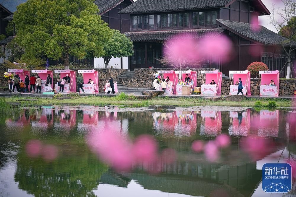 游客在浙江杭州丁蘭街道皋城村的桃園內(nèi)游園賞花(3月25日攝)。近年來,杭州丁蘭街道皋城村在改善村容村貌、建設(shè)美麗鄉(xiāng)村的基礎(chǔ)上發(fā)展鄉(xiāng)村旅游業(yè),促進鄉(xiāng)村文旅融合。新華社記者 江漢 攝
