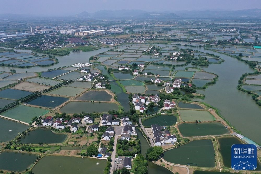 6月9日拍攝的浙江湖州市南潯區(qū)和孚鎮(zhèn)新荻村(無人機照片)。近年來,新荻村大力發(fā)展水文化、漁文化、菱文化,結(jié)合自身特色發(fā)展休閑鄉(xiāng)村旅游,打造美麗鄉(xiāng)村升級版。新華社記者 黃宗治 攝