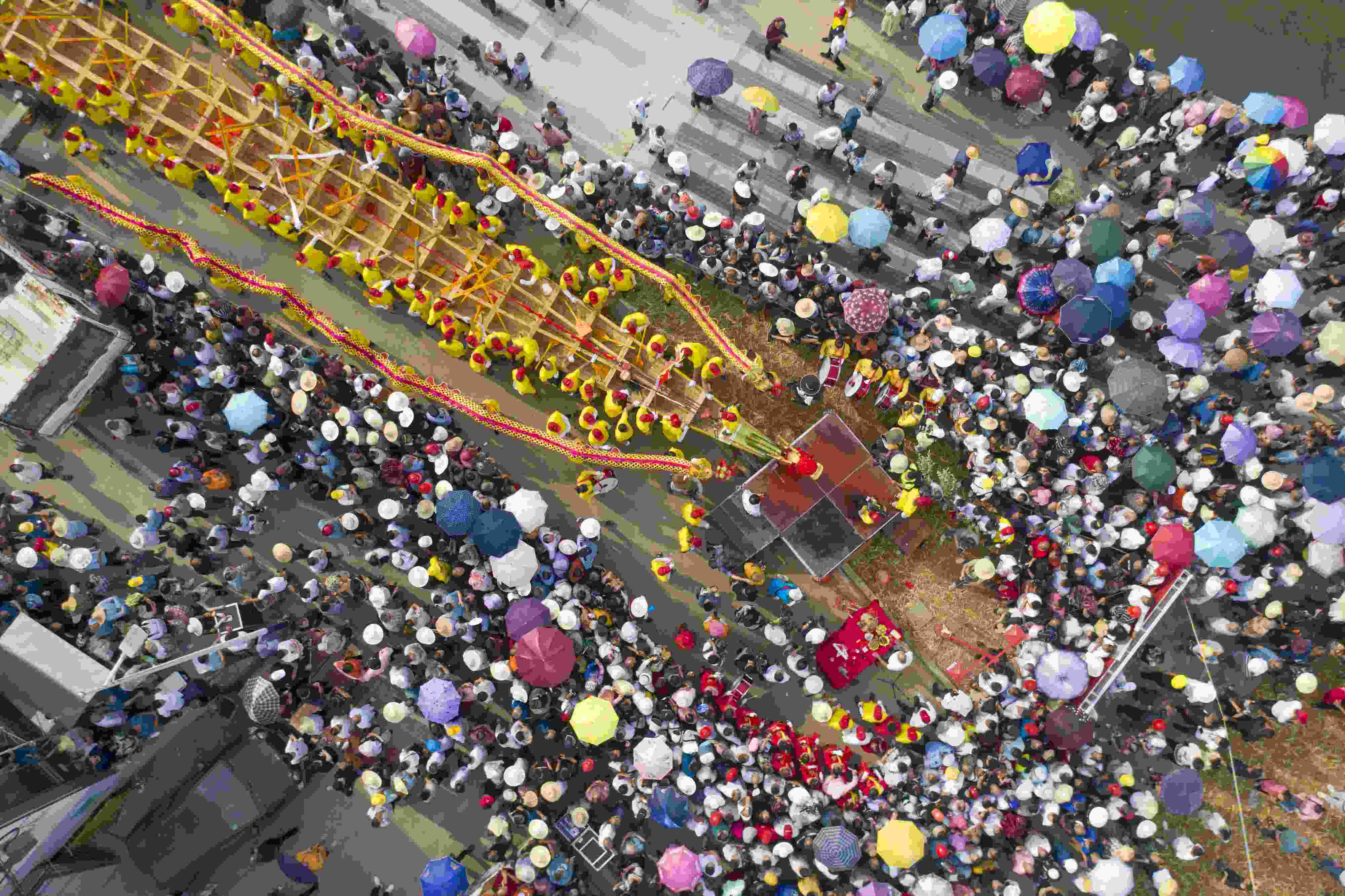 2023年6月12日,由北岸新村打造的長達(dá)99.9米的巨型雙橈龍舟在湖南省益陽市赫山區(qū)蘭溪鎮(zhèn)舉行“百米龍舟”登江儀式。 視覺中國