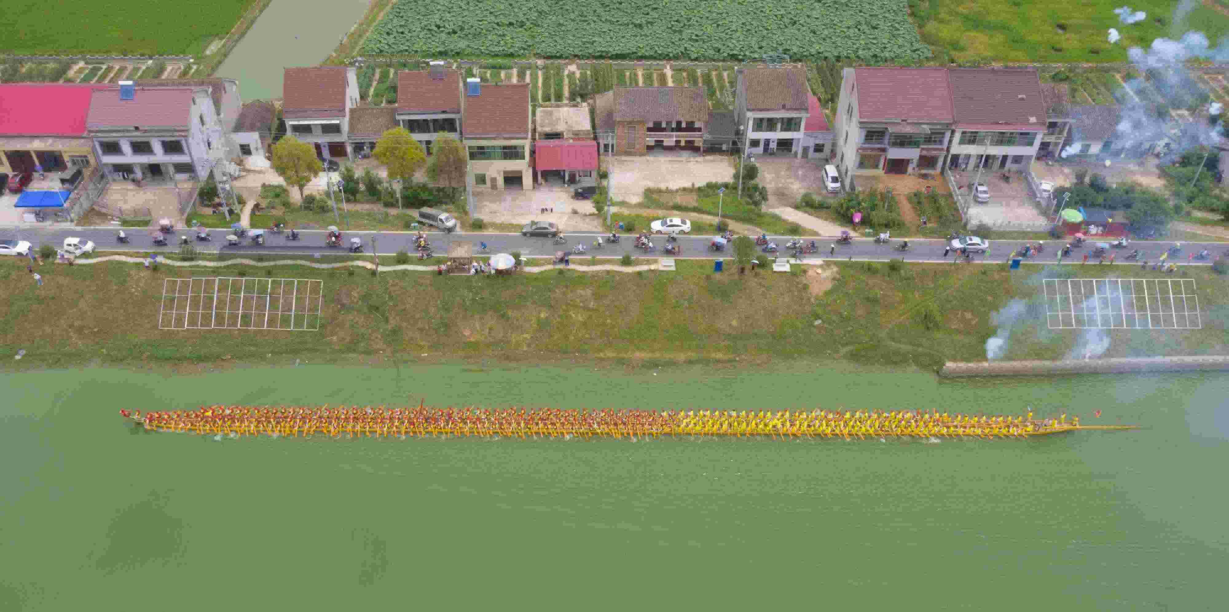 2023年6月12日,由北岸新村打造的長達(dá)99.9米的巨型雙橈龍舟在湖南省益陽市赫山區(qū)蘭溪鎮(zhèn)舉行“百米龍舟”登江儀式。