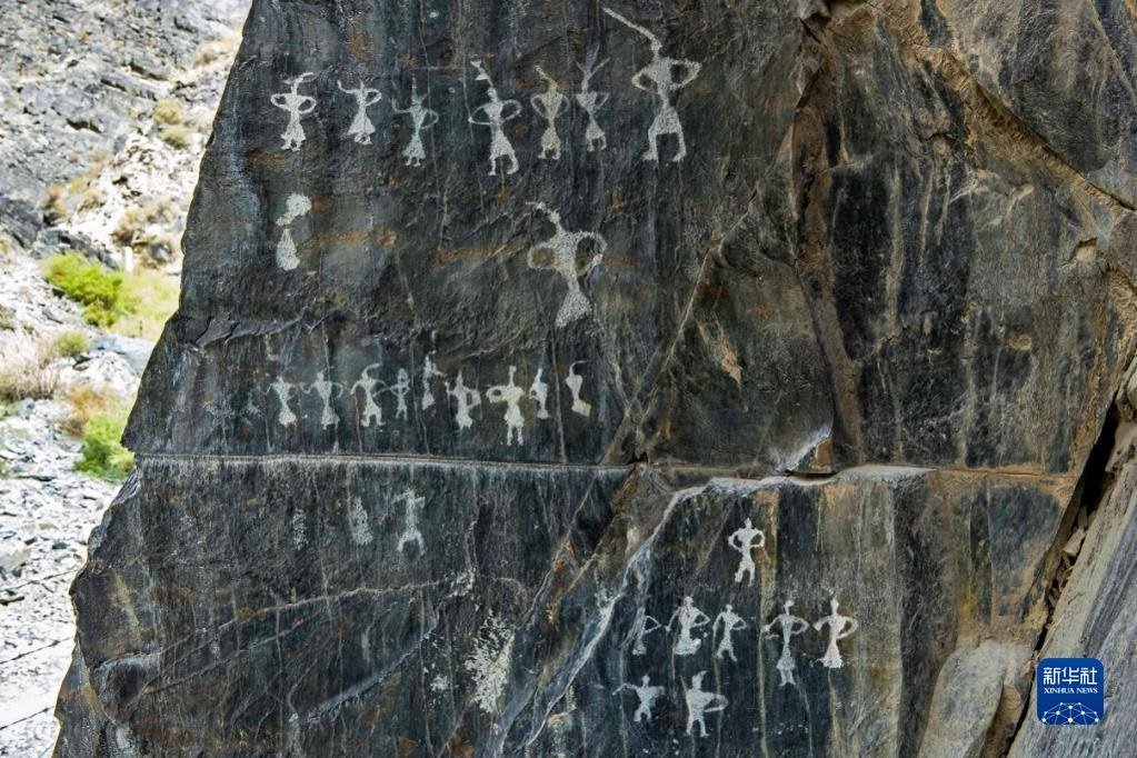 甘肅省嘉峪關市黑山巖畫中的一幅眾人舞蹈巖畫(資料照片)。