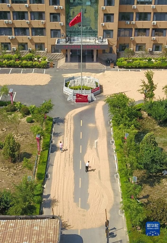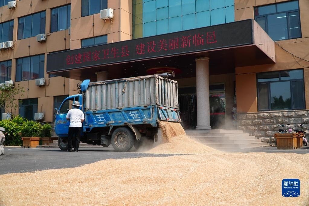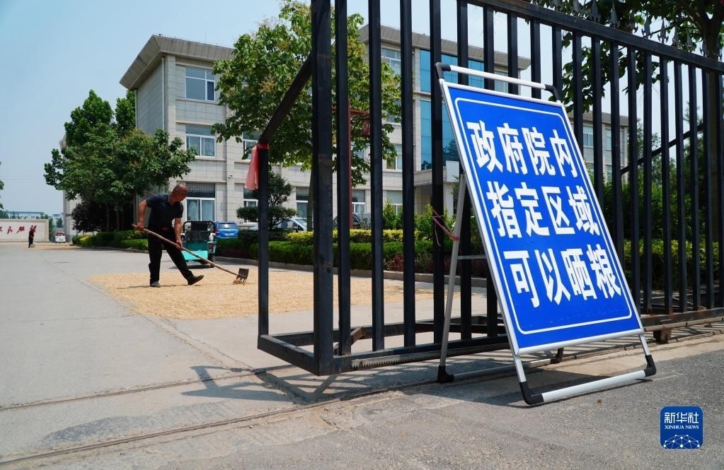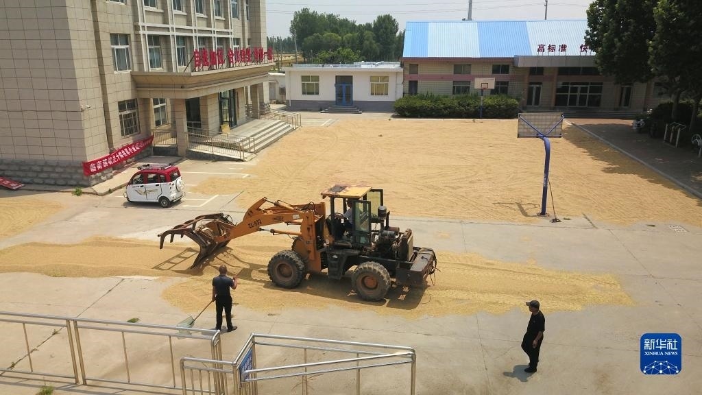 “三夏”期間,山東省產(chǎn)糧大縣臨邑縣開放政府大院方便農(nóng)民曬糧。目前,臨邑縣全縣12個鄉(xiāng)鎮(zhèn)(街道)的政府大院、641個村級組織活動場所大院以及文化廣場,共1525處公共區(qū)域已全面開放,優(yōu)先用于群眾曬糧。   新華社記者 徐速繪 攝