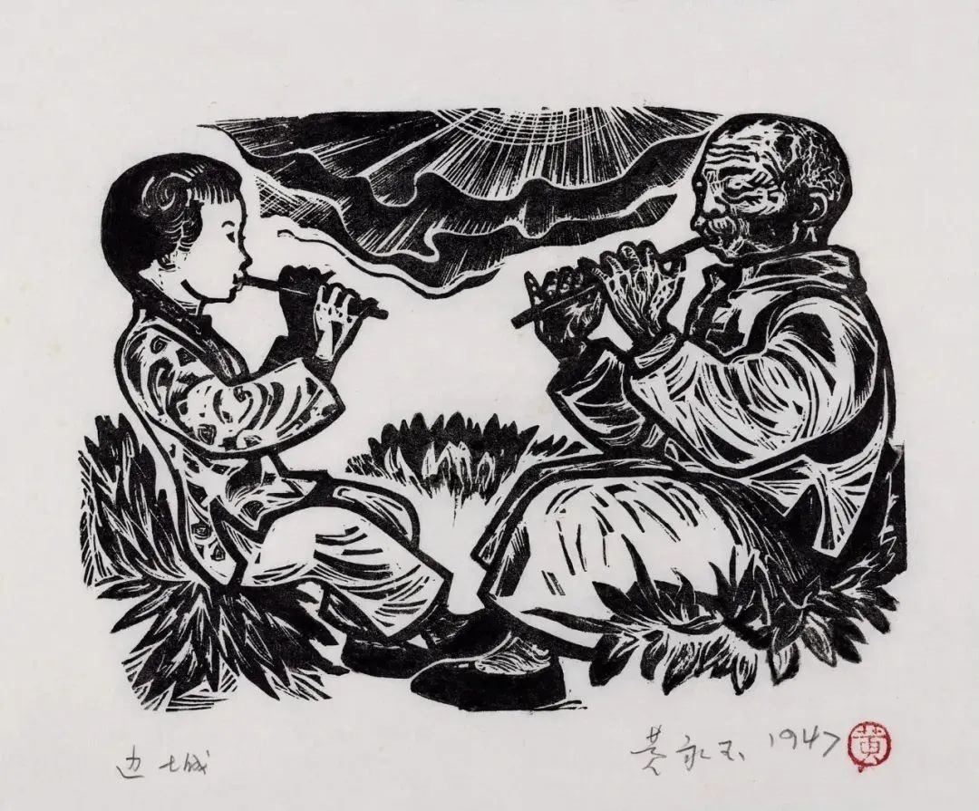 翠翠和爺爺 13.5×18.5cm 1947年 沈從文小說(shuō)《邊城》插圖