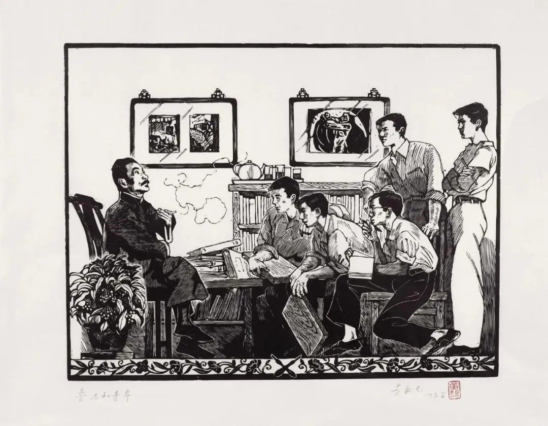 魯迅先生和青年木刻工作者  35×45cm 1954年