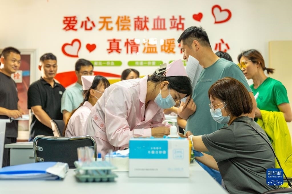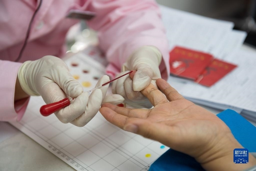 6月14日,市民在安徽省合肥市肥東縣血站無償獻血室進行獻血前檢驗。   新華社發(fā)(阮雪楓攝)