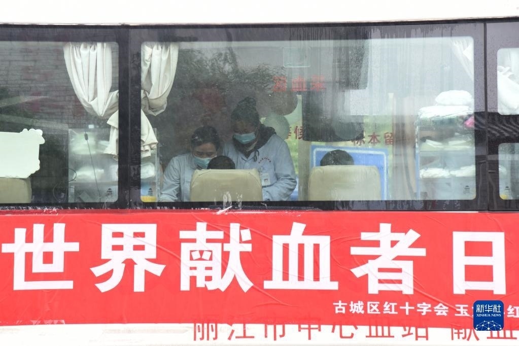 6月14日,市民在云南省麗江市祥和商業(yè)廣場的流動獻血車內(nèi)獻血。 新華社發(fā)(趙慶祖攝)
