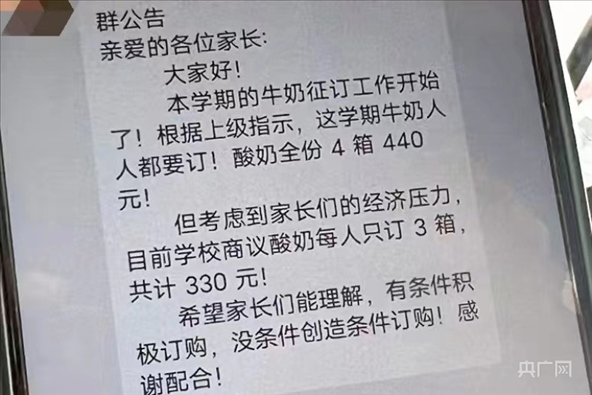 ·駐馬店正陽縣教育局發(fā)布關(guān)于正陽縣某學(xué)校涉嫌違規(guī)征訂學(xué)生飲用奶的調(diào)查情況通報:涉事班級解讀文件出現(xiàn)偏差。處理意見:立即暫停征訂工作,進行整頓規(guī)范,對相關(guān)責(zé)任人員進行調(diào)查。