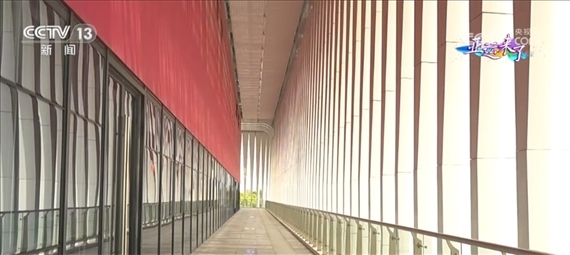 總臺(tái)央視記者 任梅梅:現(xiàn)在我們就來(lái)到了手球館室外的二層平臺(tái),進(jìn)入了“水幔”的內(nèi)部,這一條條垂著的“水幔”其實(shí)不僅僅是裝飾品,更有著實(shí)際的作用,它們就像百葉窗一樣,能夠起到隔熱的效果,另外還可以減少眩光,提高室內(nèi)視覺(jué)的舒適度。
