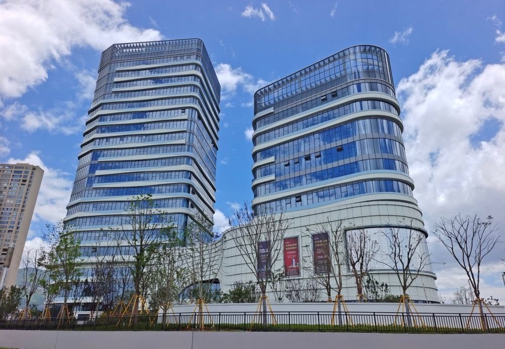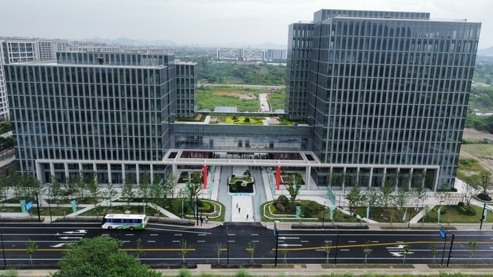 位于浙江杭州市西湖區(qū)雙浦鎮(zhèn)的西湖—淳安山海協(xié)作“共富飛地”千島湖智邦大廈正式開園(2023年8月28日攝)。新華社發(fā)