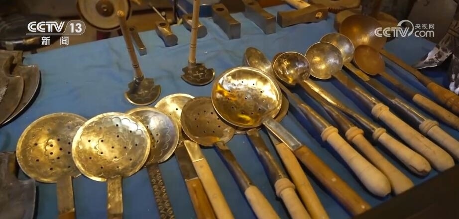 總臺記者 劉菲:如今的古城最吸引人們的并非熱鬧的商業(yè)街,而是一個個非物質(zhì)文化遺產(chǎn)的手工制作,現(xiàn)在在古城里有20多種的非遺制作。在很多年前我曾經(jīng)來過這里,這里就是一個小小的鐵匠鋪,而如今再來到這兒,已經(jīng)變成了一個打鐵技藝的展示館。小到一個湯勺,大到生產(chǎn)農(nóng)具,聽著這打鐵的聲音,也仿佛把我?guī)Щ亓水斈辍?/p>