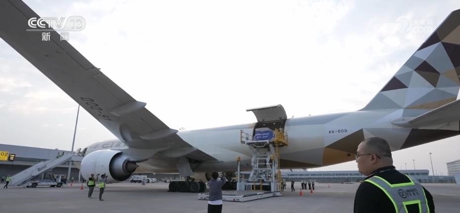 作為亞洲首個專業(yè)貨運(yùn)機(jī)場,鄂州花湖機(jī)場的國際貨運(yùn)班機(jī)一片繁忙。這種裝有100噸左右跨境物流包裹的貨運(yùn)飛機(jī),10個多小時后就能抵達(dá)德國法蘭克福機(jī)場。像這樣的國際貨運(yùn)航班,鄂州花湖機(jī)場每周要起落28架次,截至2023年8月,已累計將超過1.5萬噸貨物運(yùn)往海外。